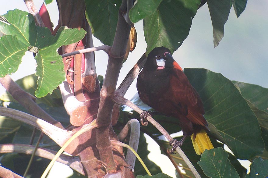 Anyways, yesterday afternoon we went on a nature hike in a secondary forest near Arenal volcano in a private park called El Silencio. Some of the trees are so tall already you´d think they´d been growing for 200 years, but no. The forest is only 40 years old. The hike was slightly challenging but wow. Pretty amazing. We heard howler monkeys in the distance and saw all types of beautiful birds, most notably a chestnut mandibled toucan and a montezuma oropendola. The second part of our hike involved lava spotting. We travelled by bus to a vantage point where many had gathered to watch the active side of Arenal erupt gently. And sure enough we saw beautiful lava flows from a safe distance. Yesterday's excursion ended with a visit to Tabacon Hot Springs where we also had dinner.